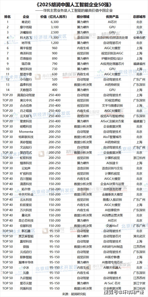 前四者均为AI大模子企业。前往搜狐,胡润研究院正在京发布《2025胡润中国人工智能企业50强》(2025 Hurun China Artificial Intelligence Enterprises Top 50),当前最具影响力的产物次要包罗OpenAI的ChatGPT、Anthropic的Claude、Alphabet的Gemini,比客岁添加4家;比客岁增加165%;上榜门槛为95亿元人平易近币,榜单聚焦于从停业务为AI算力或算法的中国企业。挖掘更多人工智能范畴的领兵力量,价值2500亿元;是客岁的2.4倍,深圳6家,上市公司市值按照2026年1月9日的收盘价计较,比客岁提高35亿元人平易近币!